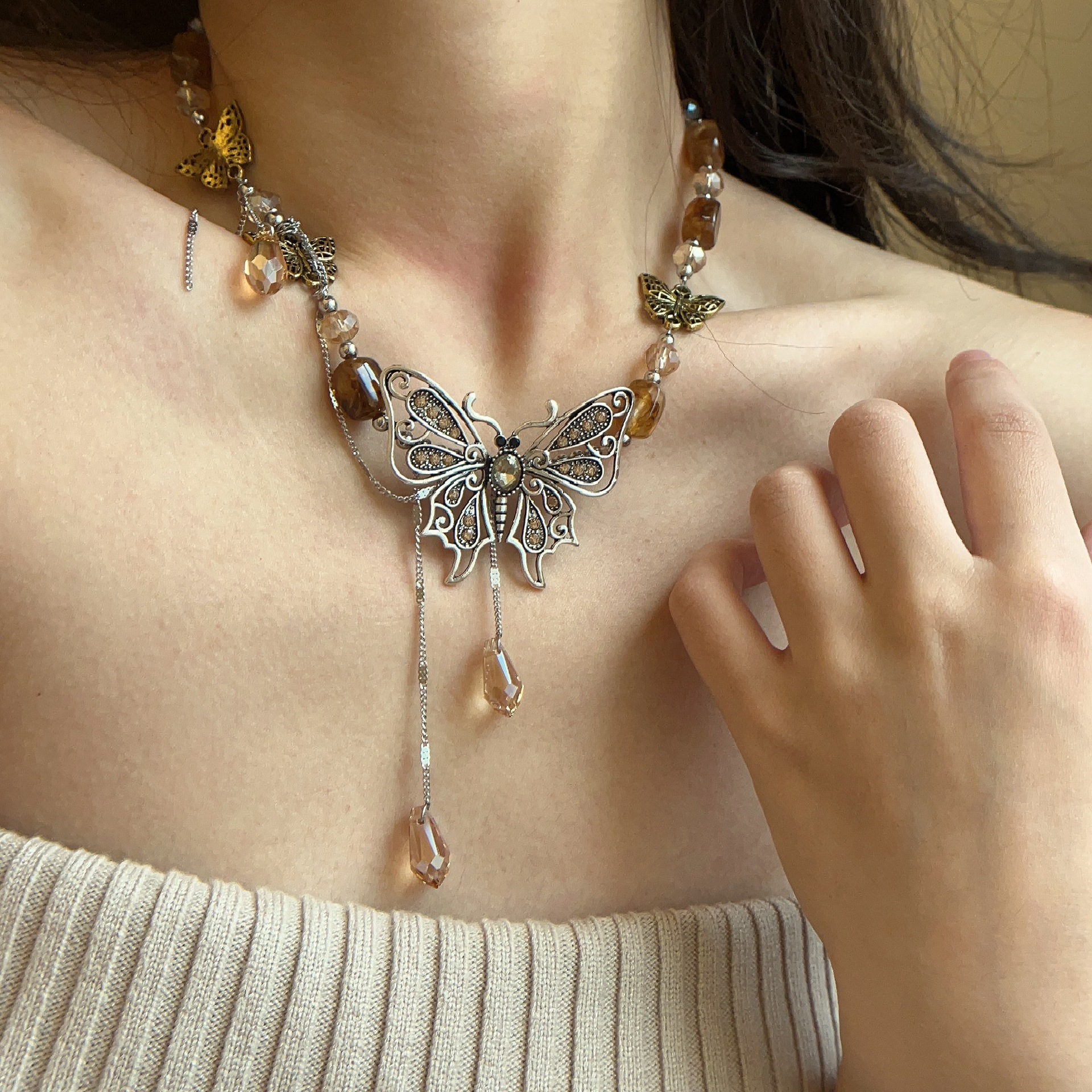 Personality exaggerated tribal ethnic style colorful collarbone chain necklace