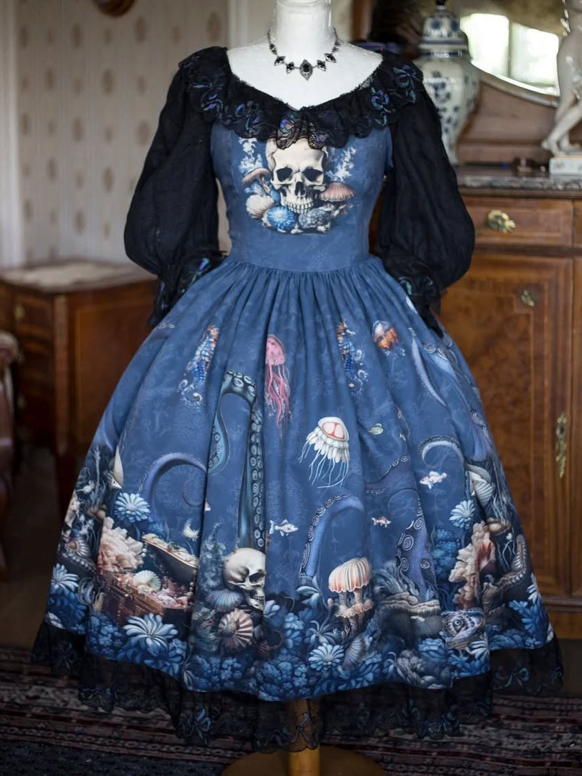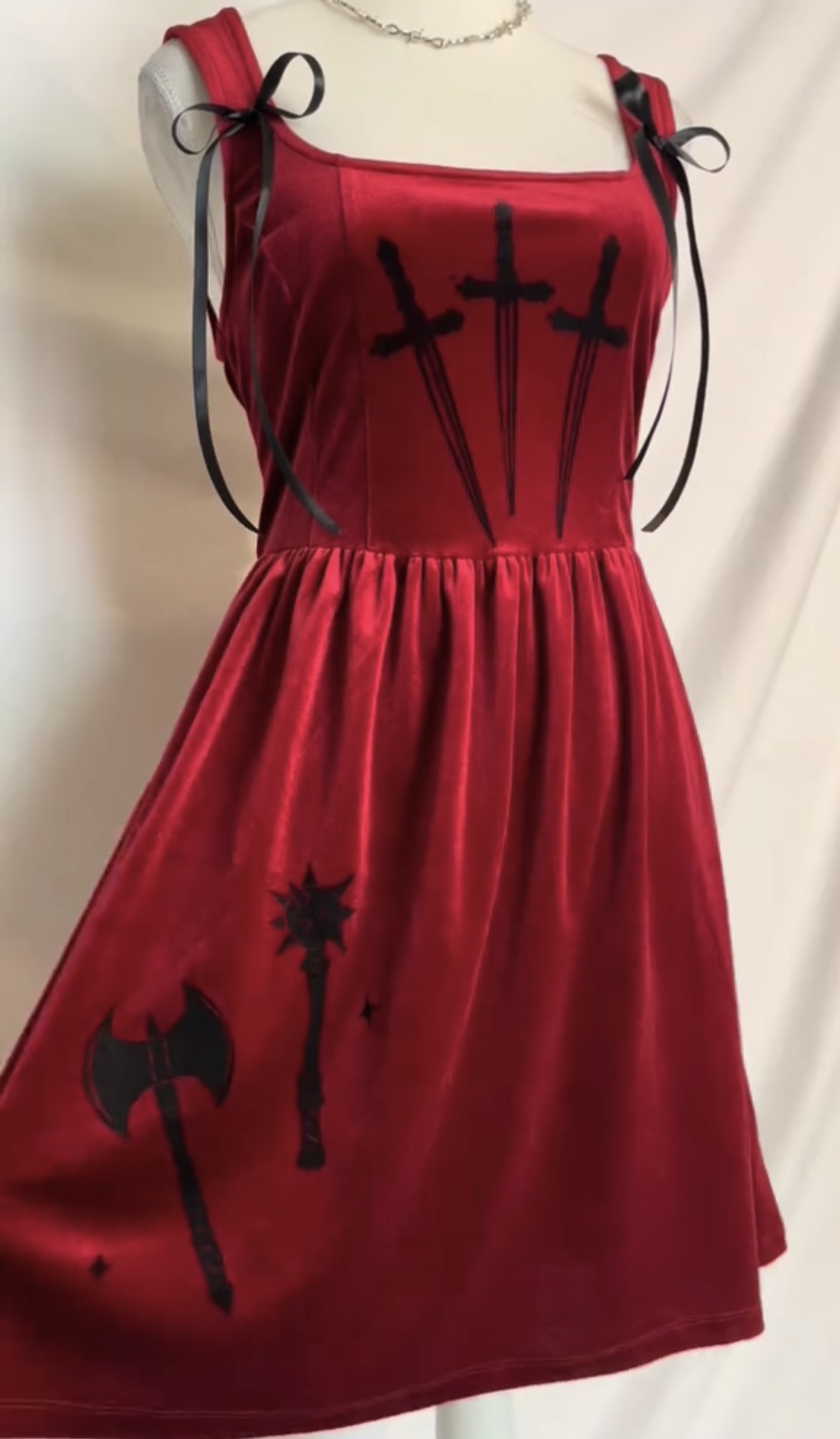 Gothic Medieval Weapon Print Lace Camisole Mini Dress