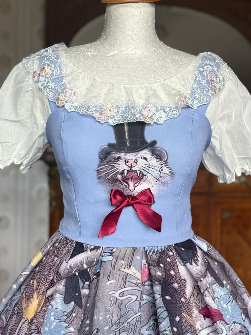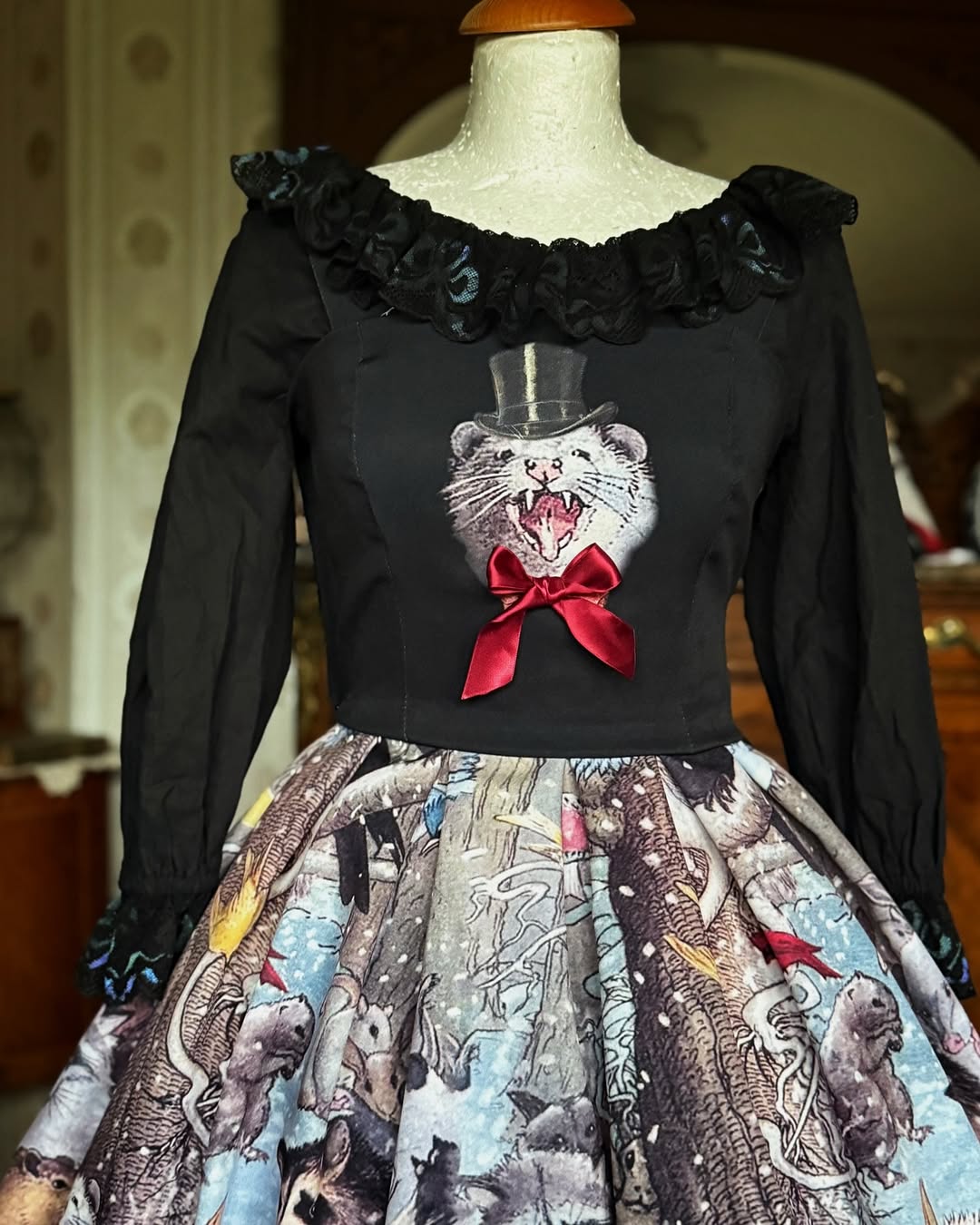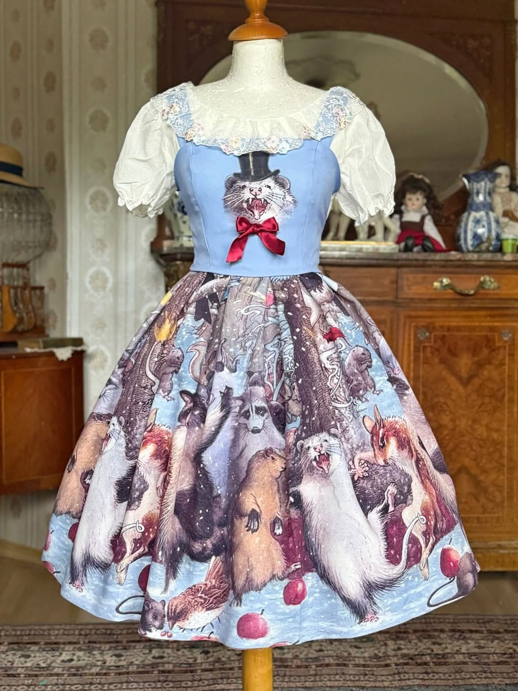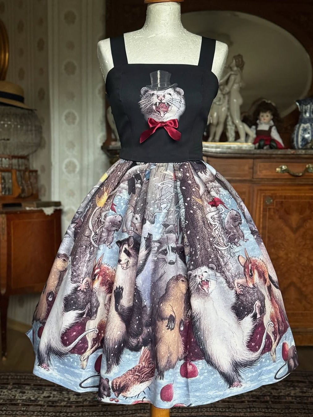 Whimsical Dark Fairy Tale Ferret Print Midi Dress