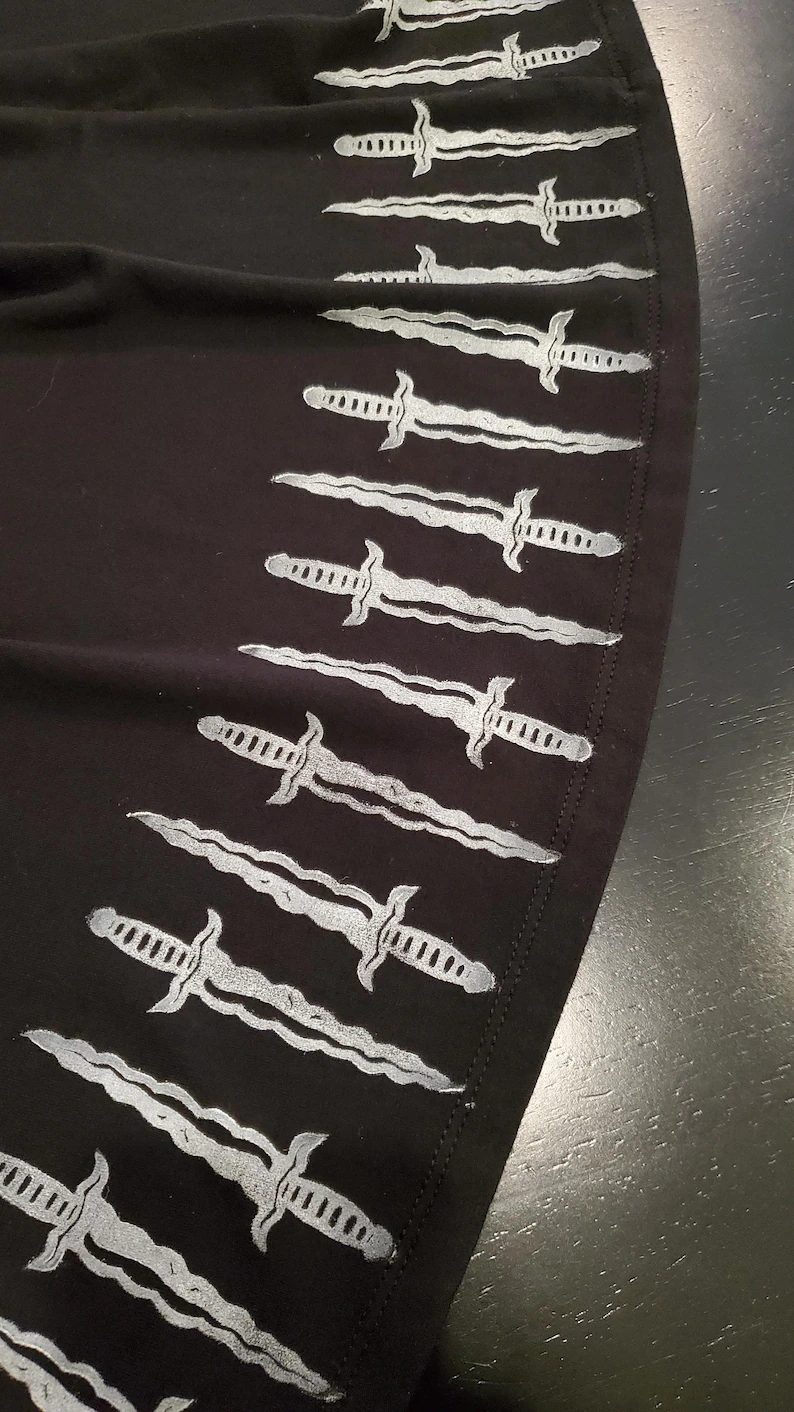 Gothic Medieval Weapon Print Ribbed Mini Dress