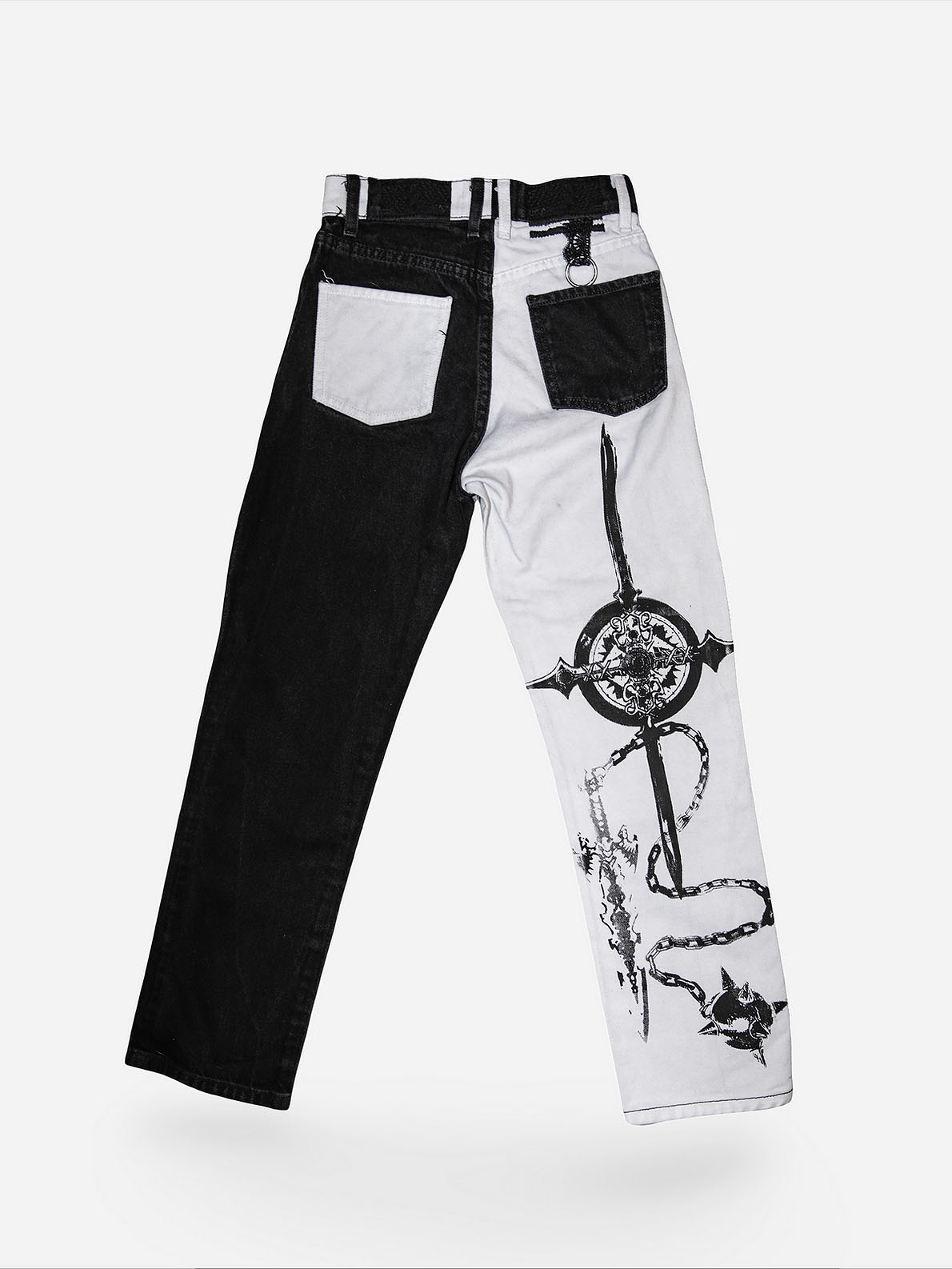 Gothic Medieval Weapon Print Black Cropped Jeans