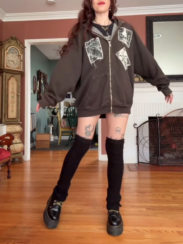 Gothic Collage Print Oversized Zip-Up Hoodie
