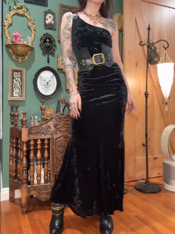 Gothic Black Velvet One-Shoulder Mermaid Gown