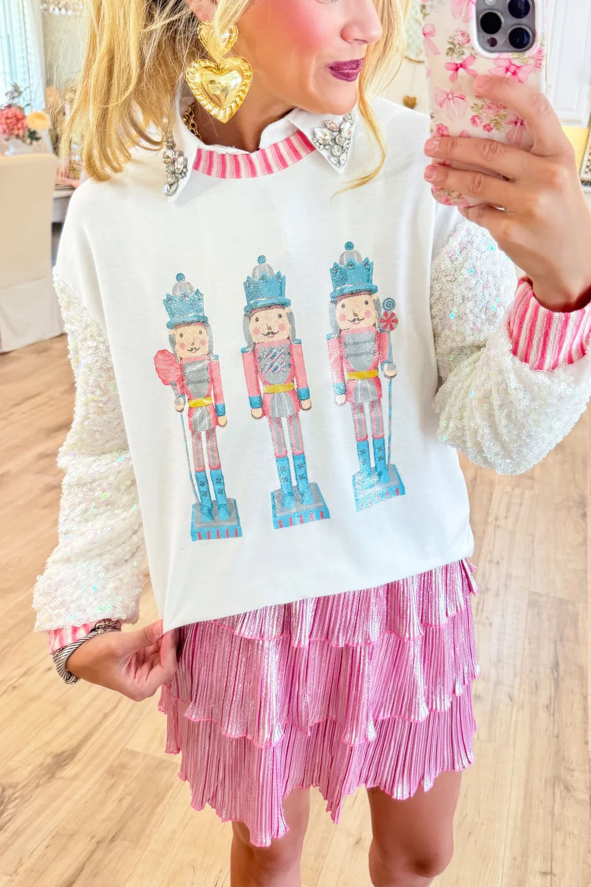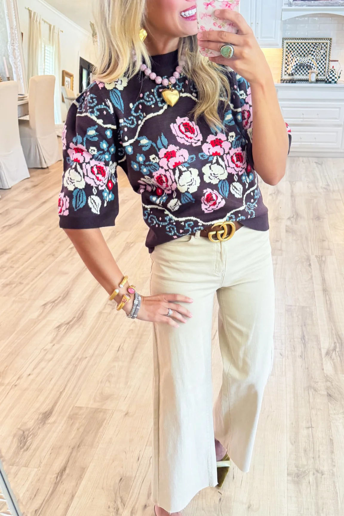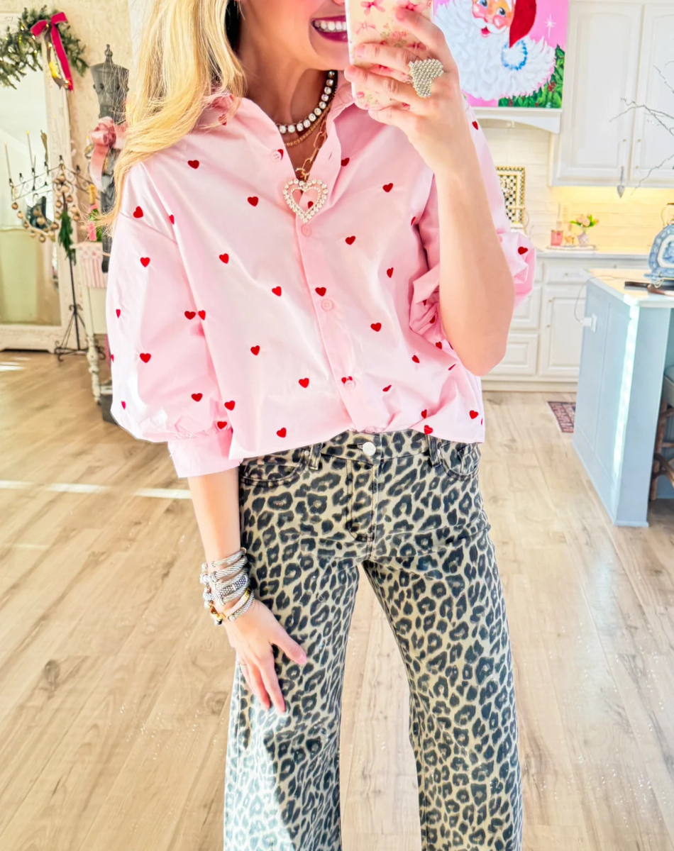 Pink and Red Heart Embroidered Puff Sleeve Top