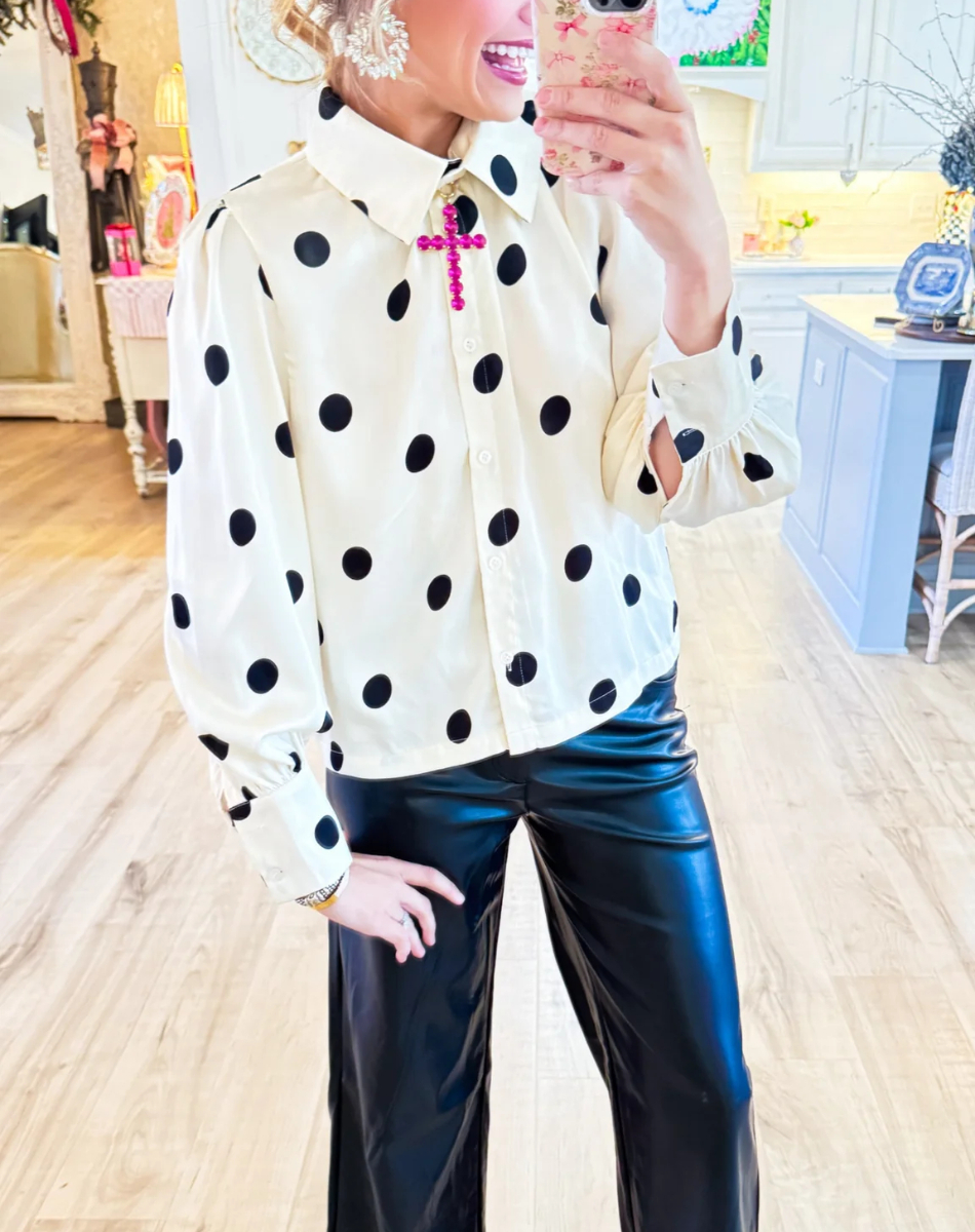 Gemma Peter Pan Collar Long Sleeve Flat Back Poplin Top