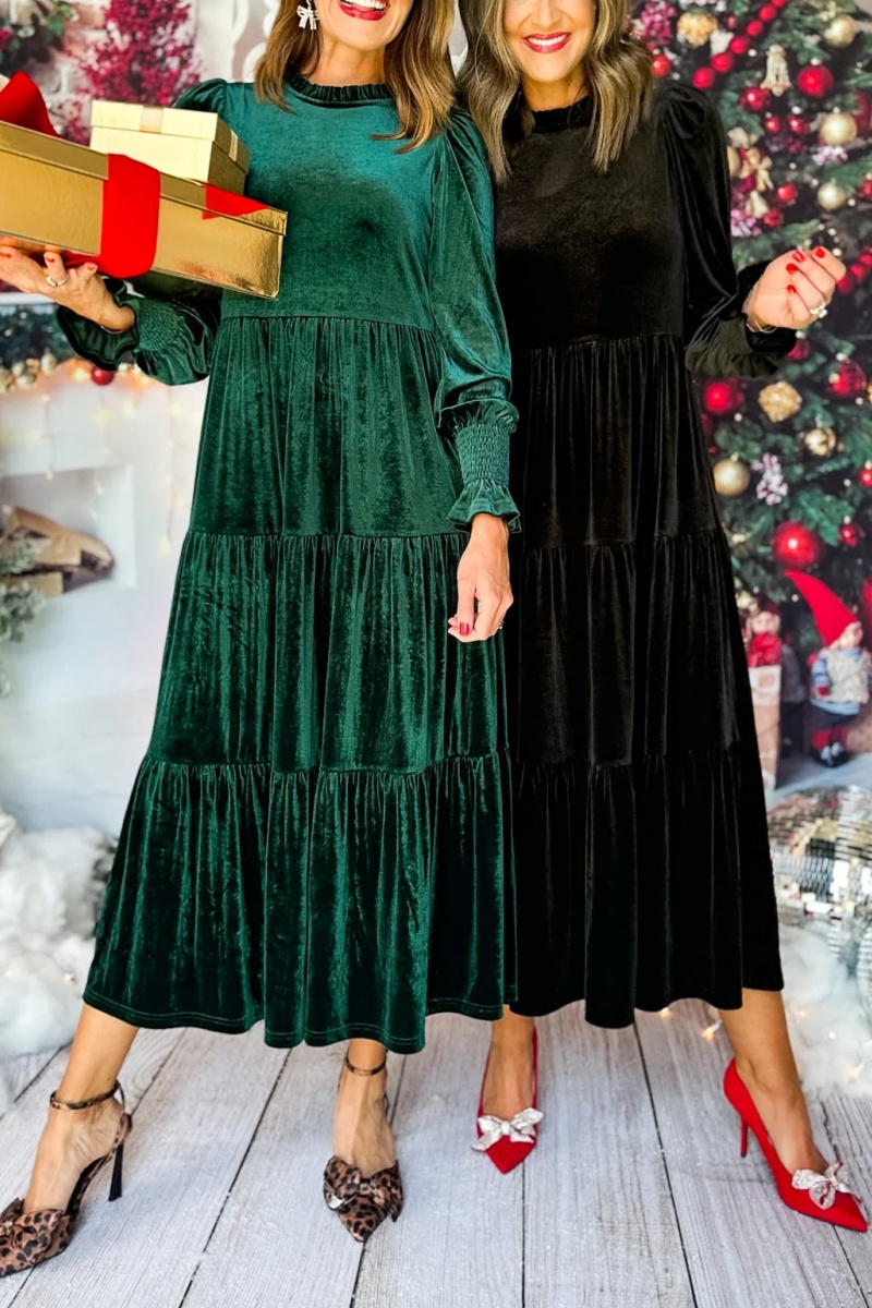 Gingham Ruffle Contrast Long Sleeve Dress In Pink