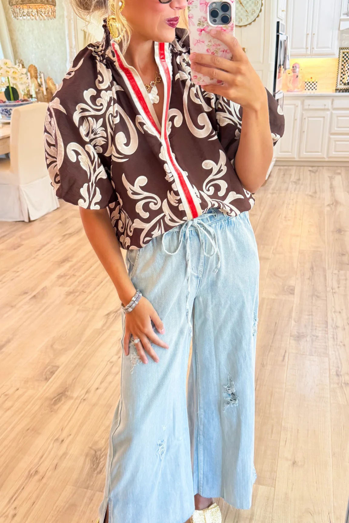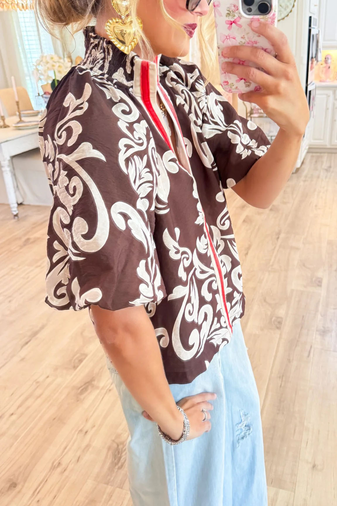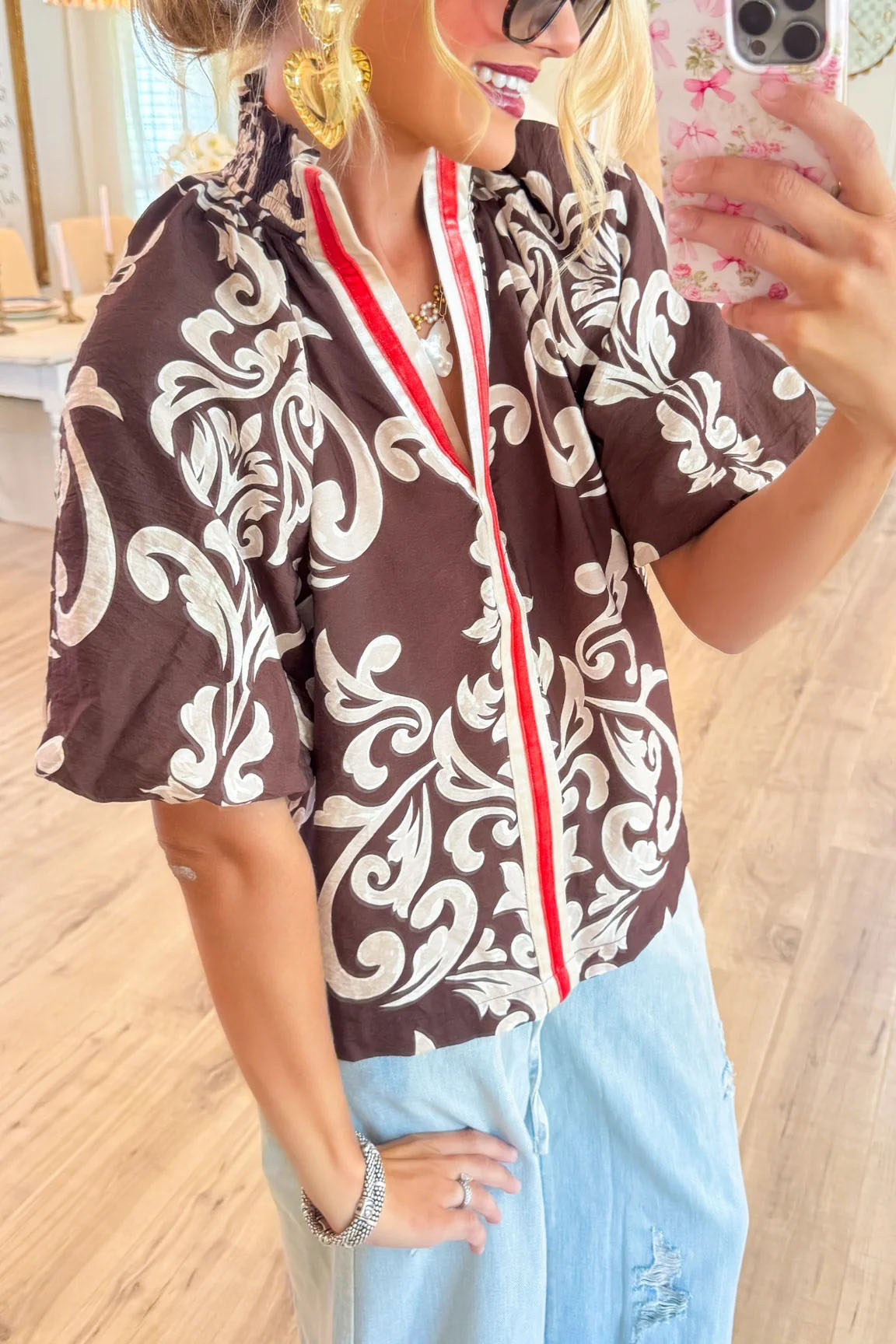 We are glad you clicked our Brown Puff Sleeve Print Detail Top because we really like its casual vibe! The Top design makes it a great choice for any fashion girl.