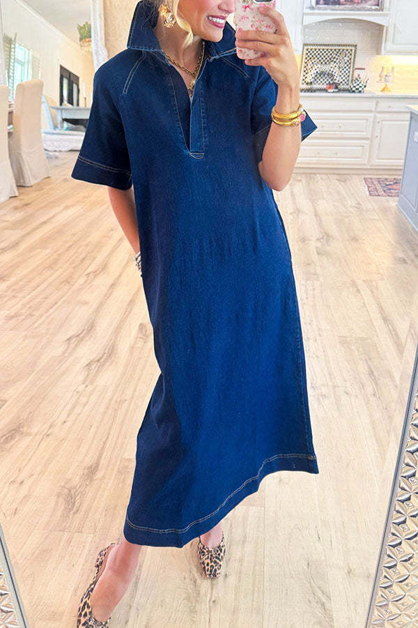 We're glad you've clicked on our new Casual Denim Pocket Midi Dress as we're really into its casual vibes! The pocket cut make this a great choice for any stylish girl.