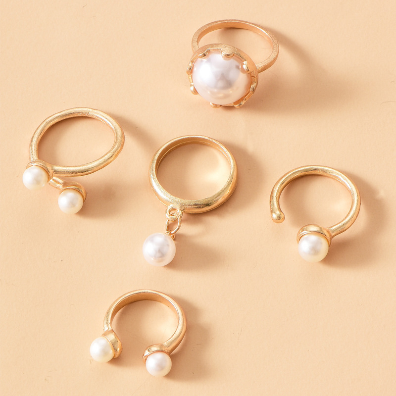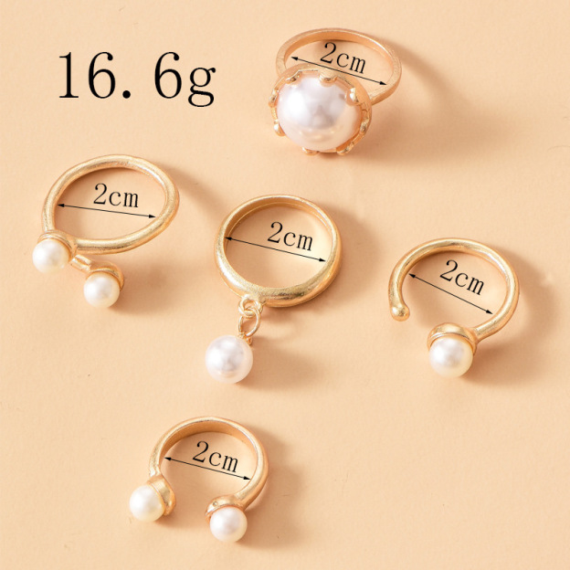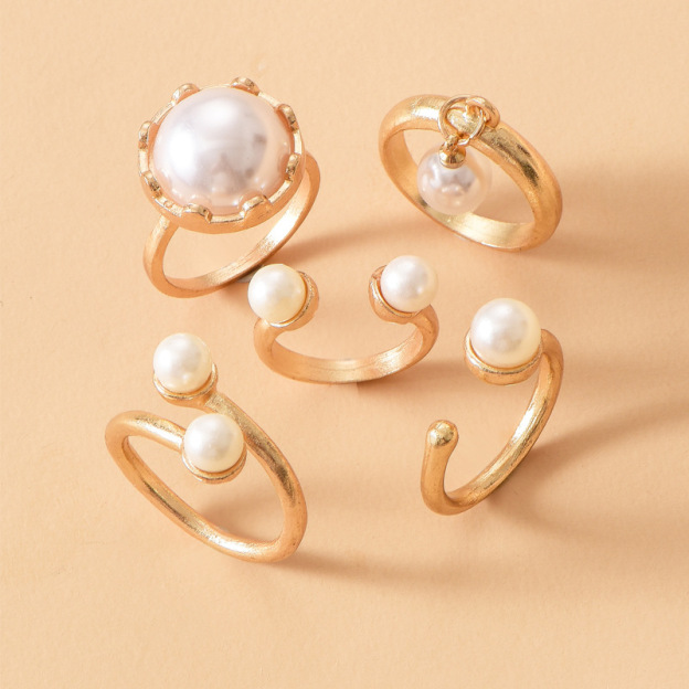 Fashionable Gold-plated Pearl Rings Set