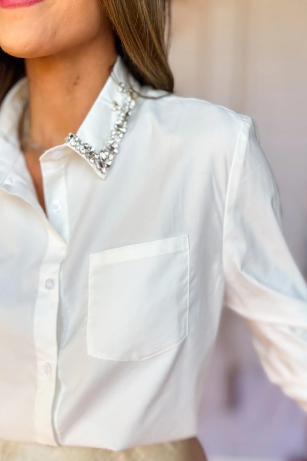 Starla Rhinestone Collared Button Down Top