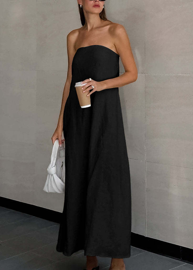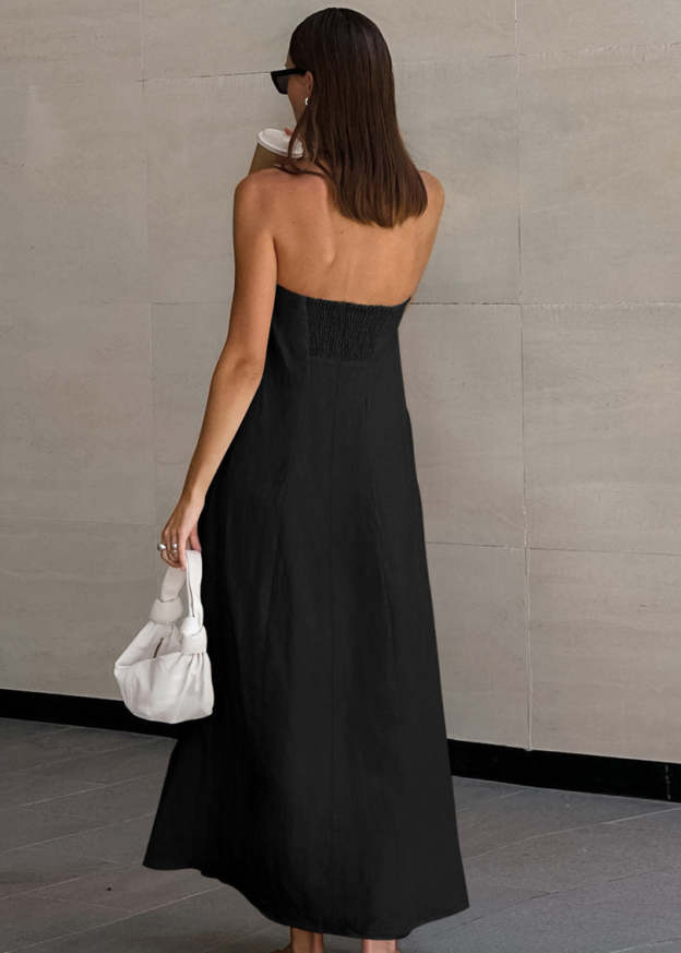Cotton and Linen Tube Top Holiday Style High Waist Dress