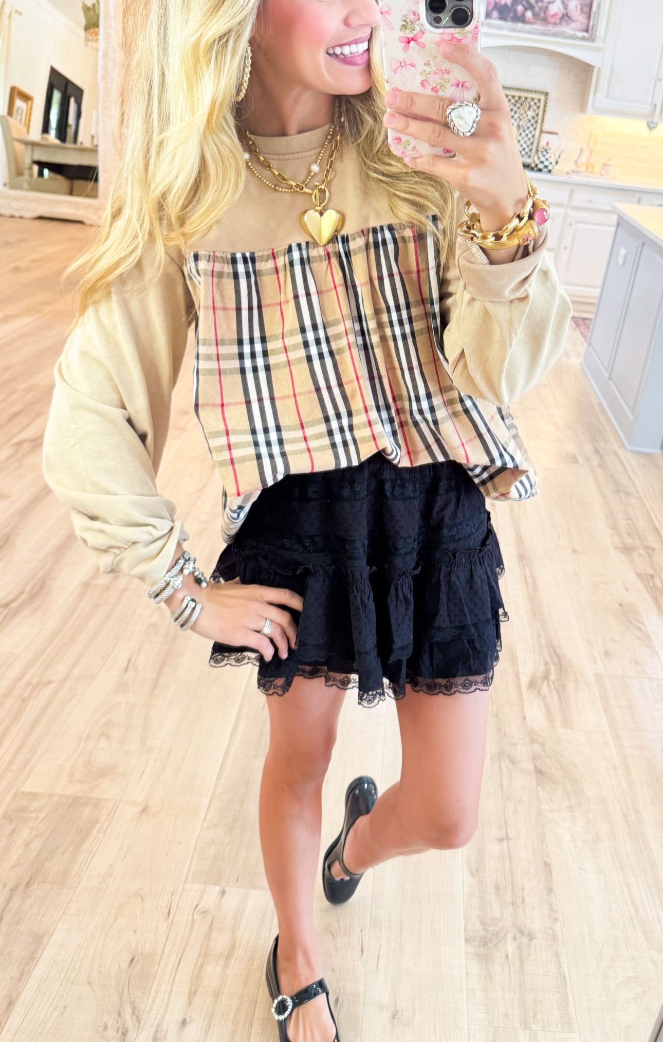 - Solid and Plaid Detailing