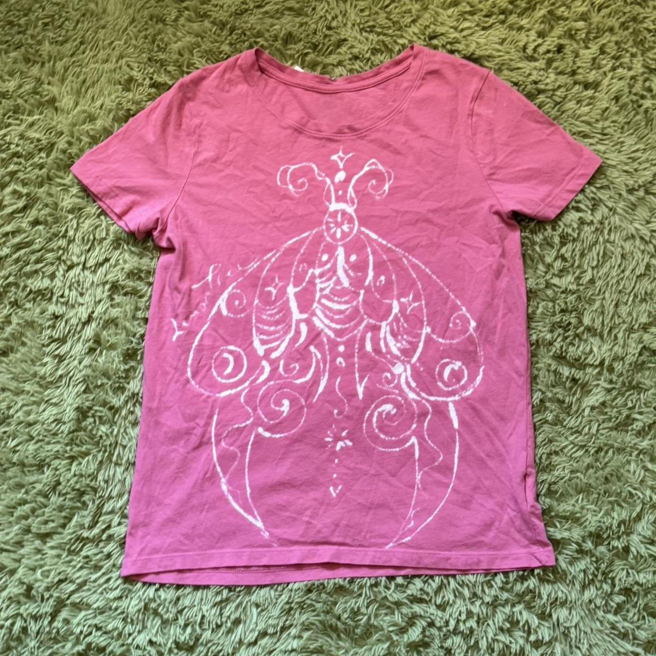 A nostalgic retro staple, this slim-fit tee is crafted from soft, breathable cotton jersey in a muted rose hue. The standout design is an intricate, hand-dyed style white print of a stylized beetle, surrounded by swirling vines and abstract details, capturing the whimsical, bohemian spirit of early 2000s casual fashion.